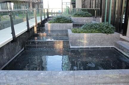 “One of the biggest challenges that we face as a designer of water features is to deal with the possibility of silt build-up along with windblown debris entering the water features from trees and the surrounding landscaping,” he explains. “This debris can enter the water features which then needs to be removed through filtration to ensure that they remain clean at all times. This is done by a series of pre-filtration systems called ‘sack filters’ along with the main filtration systems comprising of the Waterco Micron Commercial range.”