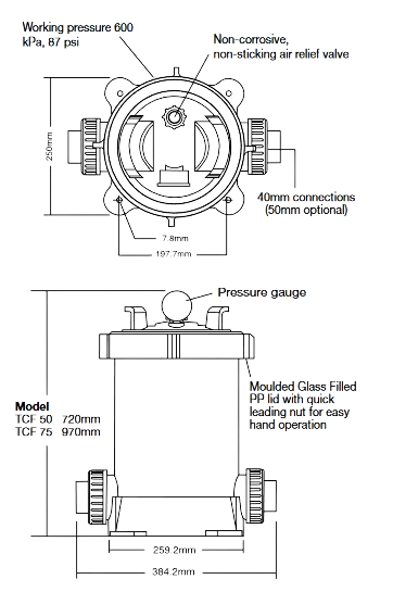 • Warranty: Waterco is proud to show its absolute confidence in its range of TCFs by offering a 5-year (2+3)* tank warranty and 1 year warranty on all other components.
