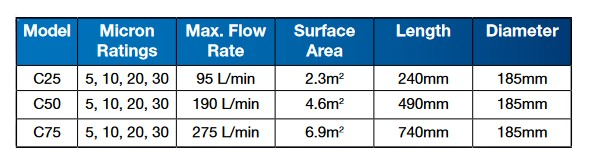 The Pleated Filter Cartridges are fabricated from pleated reusable polyester fabric. The media has been pleated to provide 2.3 to 6.9 square metres of surface area in order to maximise the cartridge dirt holding capacity and extend the time between cleaning.